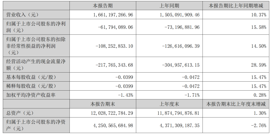 新松机器人实现营业收入 16.61 亿元,同比增长 10.37%;归属于上市公司股东净利润-0.62 亿元,同比增长15.58%;归属于上市公司股东的扣除非损益后的净利润为-1.08亿元,同比增长 14.50%。