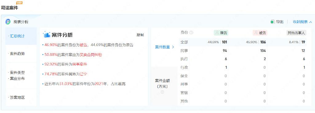 企查查数据显示,截至2025年9月,新松身为被告的司法案件仍有106起,近半数案由为买卖合同纠纷。其中近五年内约31%案件年份为2021年,占比最高。