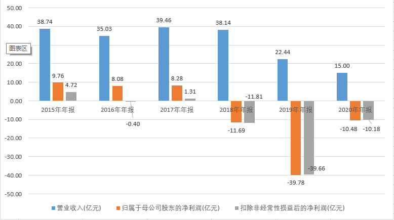 2018年,华谊兄弟营业收入实现38.14亿元,同比下降3.34%;2018年至2020年,华谊兄弟归母净利润分别录得-11.69亿元、-39.78亿元、-10.48亿元,三年累计亏损超60亿元,亏损金额超过此前三年该公司净利润总和近一倍。
