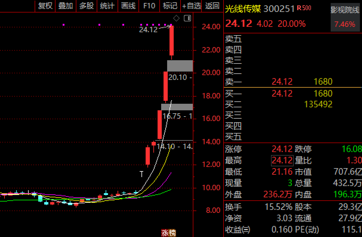 2月12日,光线传媒股价再次大涨,盘中涨停,市值超过700亿元,在整个传媒板块排名第一,断层式“遥遥领先”,今年春节以来,光线传媒股价累计涨幅已经超过150%,市值增长超420亿元。而昔日龙头华谊兄弟市值仅剩80亿,无论是经营还是股价仍然深陷在泥潭中。
