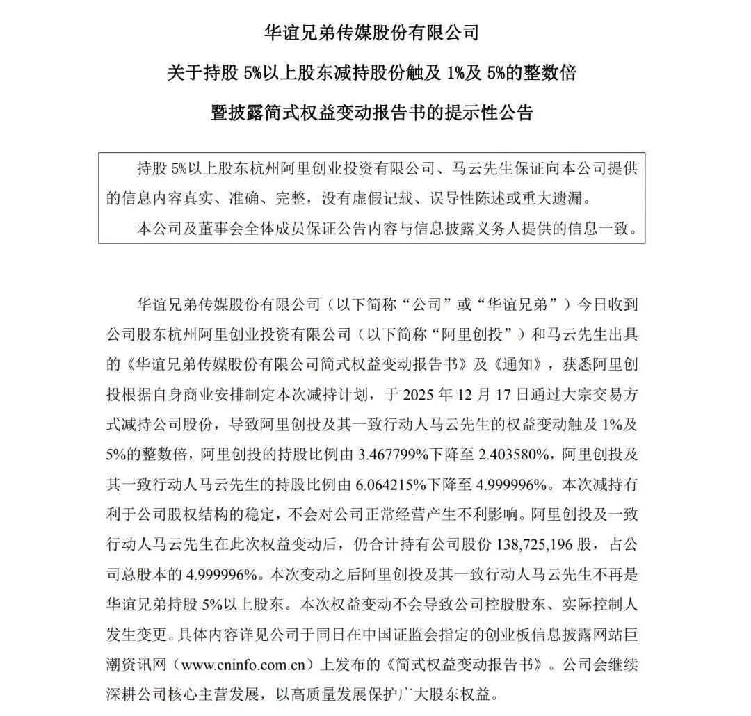 华谊兄弟公告
