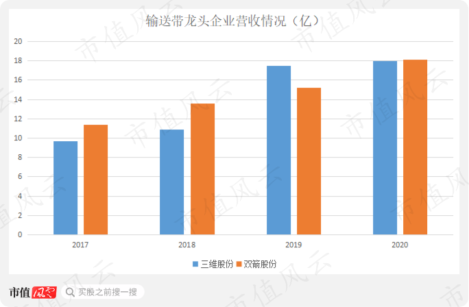 与此同时,输送带的龙头企业双箭股份(002381.SZ)和三维股份(603033.SH)的营收均快速上涨。
