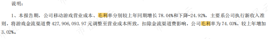 2020年手游毛利率为46%,是因为执行新收入准则,将游戏金流渠道费4亿元调整至营业成本所致。若扣除金流渠道费影响,2020年公司手游业务毛利率达到历史最高点74%。