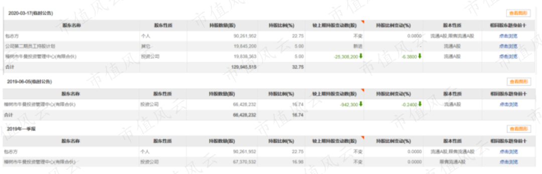2019年6月5日至2020年3月17日,牛曼投资累计减持0.48亿股,持股比例降至5%。