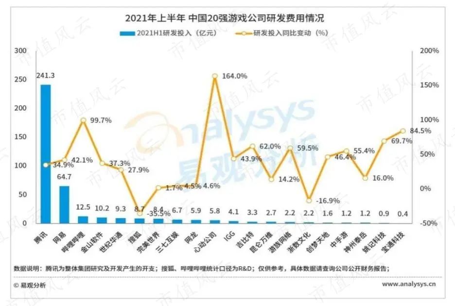 2020年易幻网络研发投入0.4亿,同比大幅增长85%,但是研发投入依旧远低于同行头部公司,仅排在第20位。