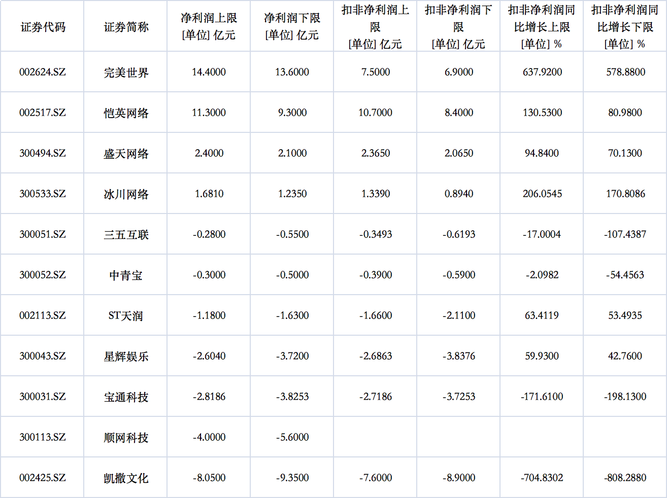 游戏行业部分上市公司已公布业绩预告