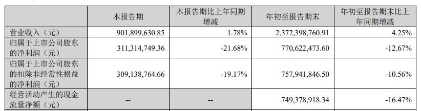 其中,第三季度,同花顺实现营业收入9.02亿元,同比增长1.78%;归属于上市公司股东的净利润3.11亿元,同比减少21.68%;归属于上市公司股东的扣除非经常性损益的净利润3.09亿元,同比减少19.17%。