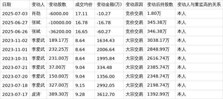 深交所公开信息显示,7月3日,中科电气独立董事肖劲在竞价交易公司股票,减持股数0.60万股,成交均价17.11元,变动金额10.27万元,变动后持股数为1.80万股。