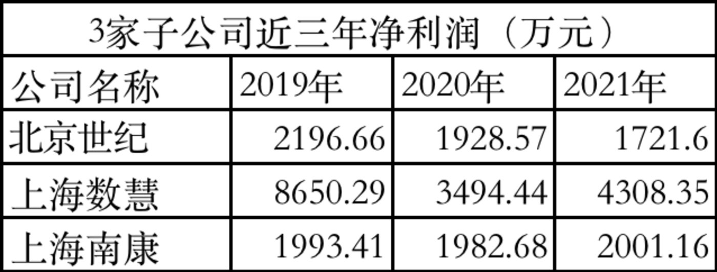 虽然收购完成后,3家标的均完成了业绩承诺,但商誉减值风险却没有随之消失。从2019至2021年公司披露的净利润来看,北京世纪业绩呈现下滑态势,上海数慧的净利润也在2020年“腰斩”。
