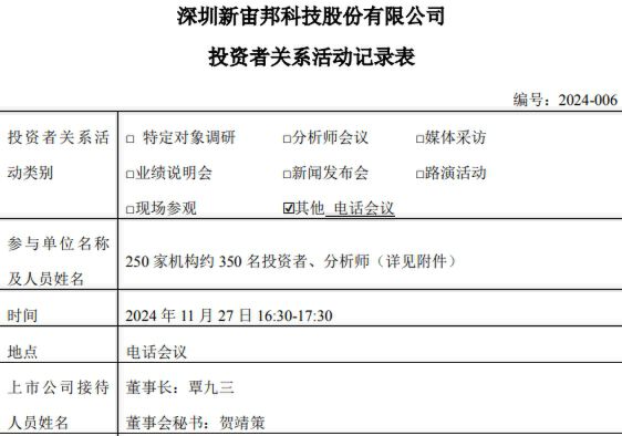 新宙邦(300037)11月28日发布消息,11月27日,董事长覃九三,董秘贺靖策接待Azimut Investment等250家机构约350名投资者、分析师调研,对公司投资江西石磊氟材料有限责任公司事项进行了说明。