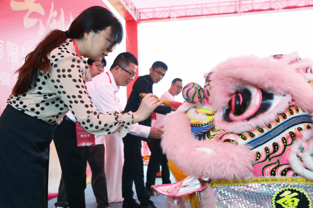 珠海冠宇电池股份有限公司代表、宁夏宝丰昱能科技有限公司代表、四川绿鑫电源科技有限公司代表、重庆新宙邦新材料有限公司王希敏先生上台为沉睡的祥狮点下尊贵的一笔,唤醒祥狮的吉祥之力,祥狮被唤醒后灵动起舞,为开业典礼增添了热烈喜庆的氛围。