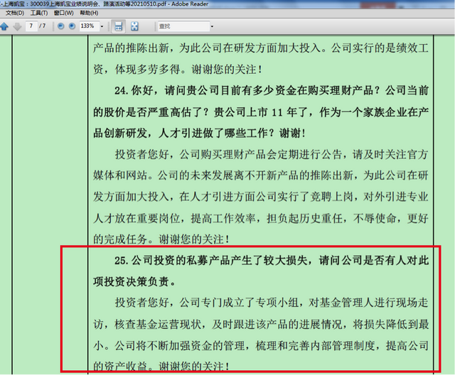在5月召开的业绩说明会上,对于有股民要求对私募踩雷负责人追责的发问,上市公司方面却避而不答,主持说明会的穆竟伟、王国明等人只是敷衍道“公司将不断加强资金的管理,梳理和完善内部管理制度”。