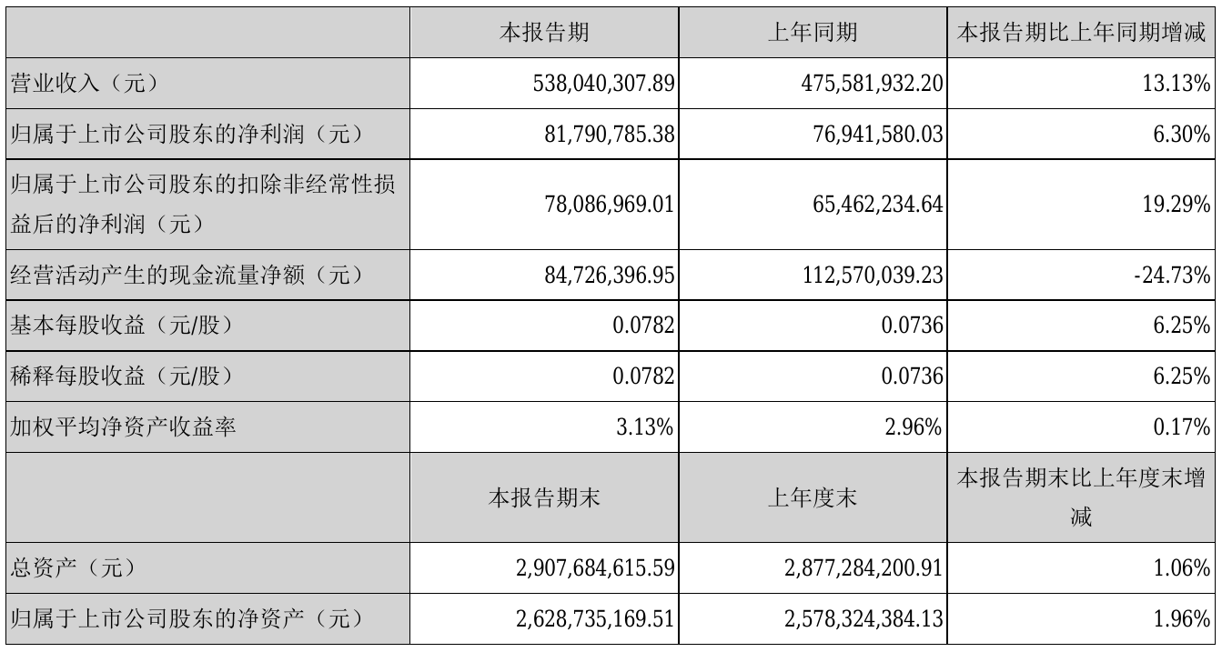 8月25日,上海凯宝(300039)近日发布2021年半年度报告,报告期内营业收入538,040,307.89元,同比增加13.13%;净利81,790,785.38元,同比净利增加6.30%。