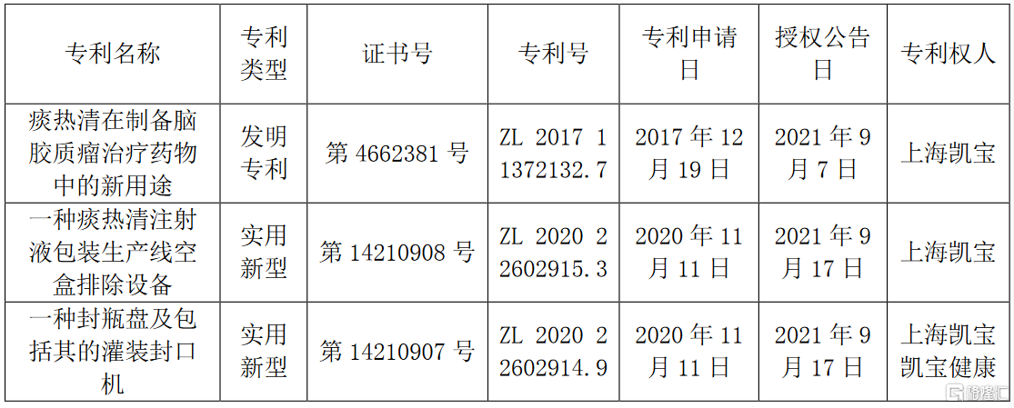 9月27日丨上海凯宝(300039.SZ)公布,公司、全资子公司上海凯宝健康科技有限公司(“凯宝健康”),于近日收到了国家知识产权局颁发的发明专利证书1个,实用新型专利证书2个,具体情况如下: