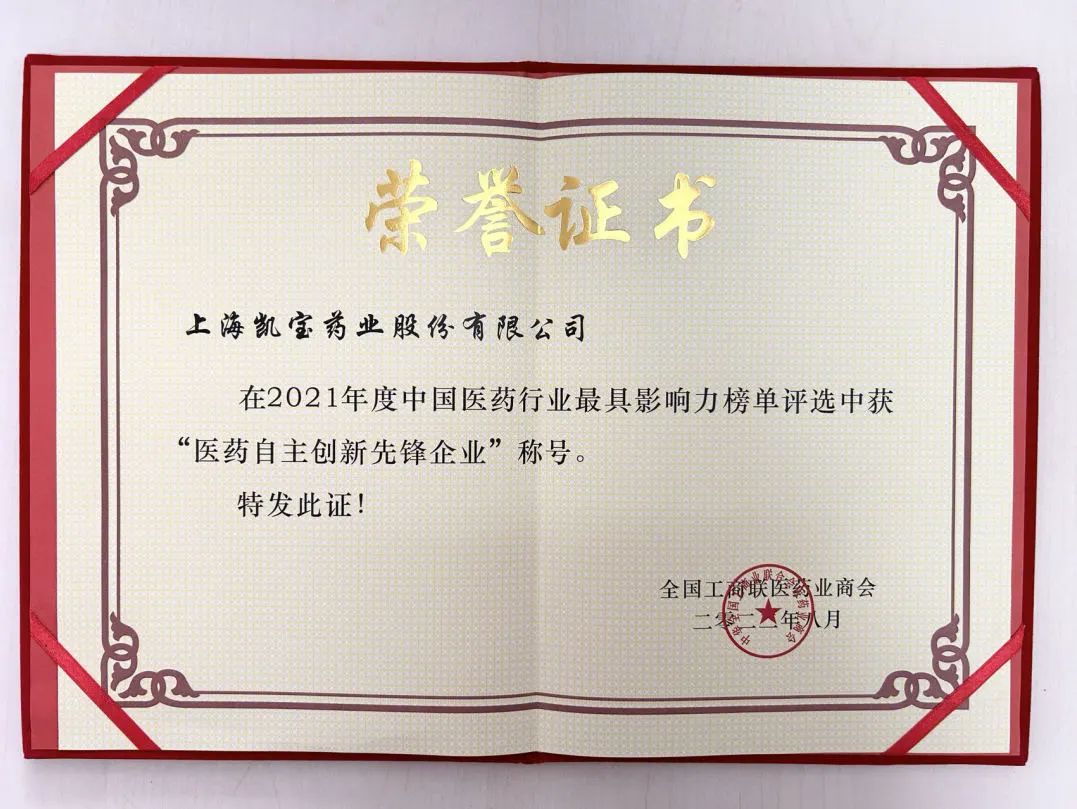 近日,由全国工商联医药业商会、青岛高新技术产业开发区管理委员会、青岛市工商联共同主办的全国工商联医药业商会年度峰会暨青岛高新区生物医药产业推介会在青岛召开。会上,全国工商联医药业商会发布了2021-2022年度中国医药行业最具影响力、2021-2022年度中华民族医药优秀品牌企业等系列榜单,上海凯宝荣获中国医药自主创新先锋企业、中国医药行业守法诚信企业、中国医药优秀品牌企业三项殊荣。