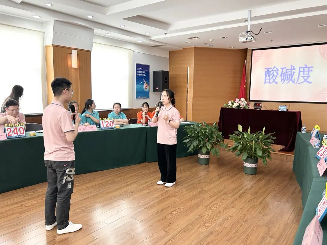 本届GMP暨岗位知识竞赛主持人及参赛选手皆为公司新进员工,共6支队伍参与,全程分为团队赛和“一战成王”个人赛。团队赛中,每一支队伍团结一致、协同合作。个人赛中,每一位选手皆充分备战,GMP知识储备丰富,在选手PK环节中,多次出现两位选手激战多个回合还未分出胜负的现象,使现场的气氛变得更加紧张热烈。各位选手的精彩表现、评委的专业点评以及观众的热情互动,使整场比赛精彩纷呈。