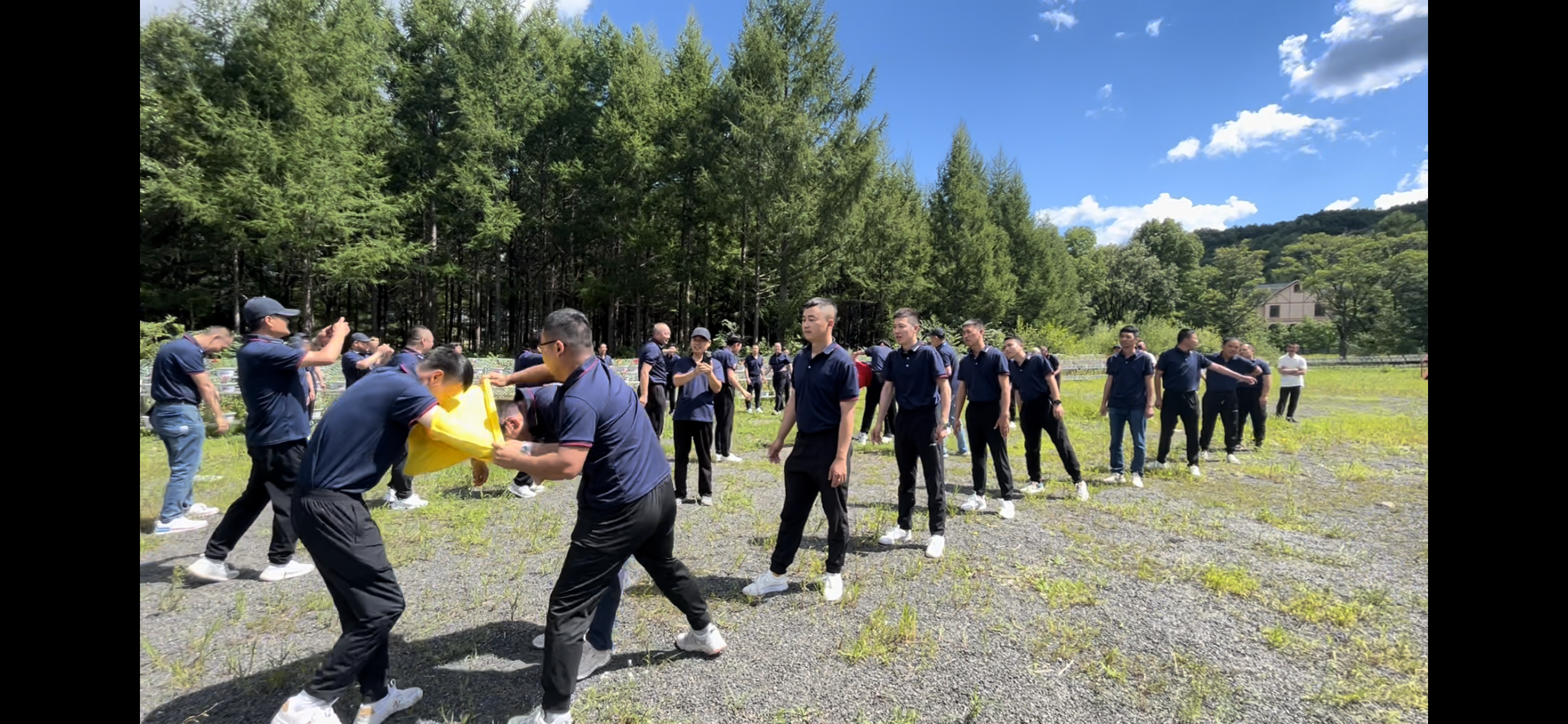 微雨为风光秀美的亚布力罩上了一层旖旎的薄纱,队员们在经历过盘山栈道、溪边花海后,在总裁赵晓红的带领下开启了迷宫探索,一行人坚定前行,最终击鼓为胜。鼓响一刻天空阳光乍现,无限风光此刻尽收眼底。