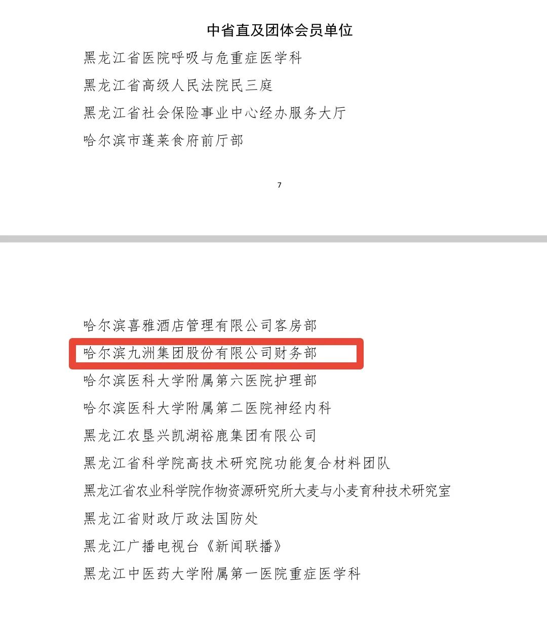 哈尔滨九洲集团股份有限公司财务部荣获黑龙江省“巾帼文明岗”称号。
