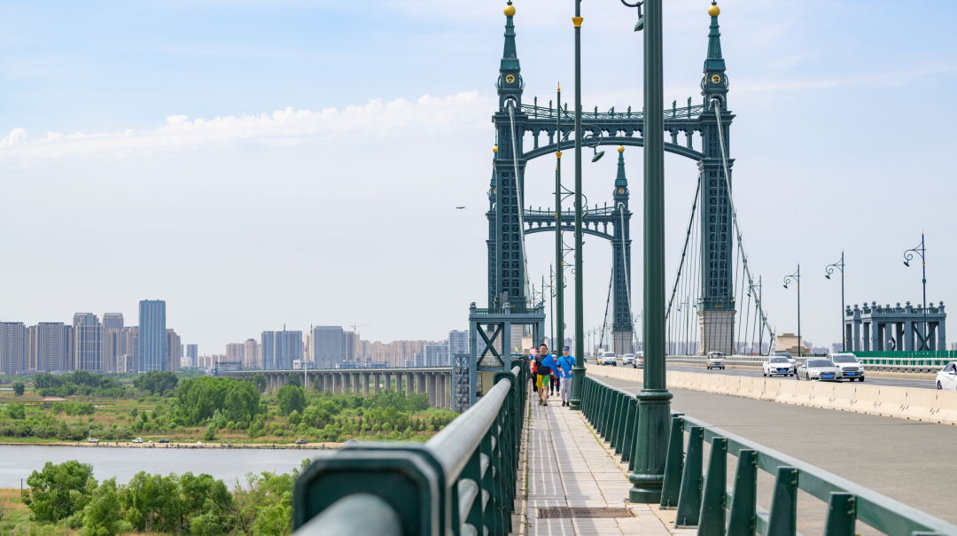 整体徒步路线中为保障参赛者的能量供给和增强活动的闯关仪式感,共设置三处打卡补给站,参赛者在此领取打卡凭证后,沿着阳明滩大桥继续旅程。俯瞰松花江美景,感受清风拂面,放眼远眺,视线掠过松花江面,跃向广阔湿地,壮美的生态长廊勾绘出松北自贸区的辽阔蓝图。此刻,九洲人正迈着向阳而行的步伐,和光同尘,恰如清洁能源事业发展的蓬勃态势。