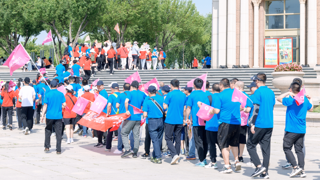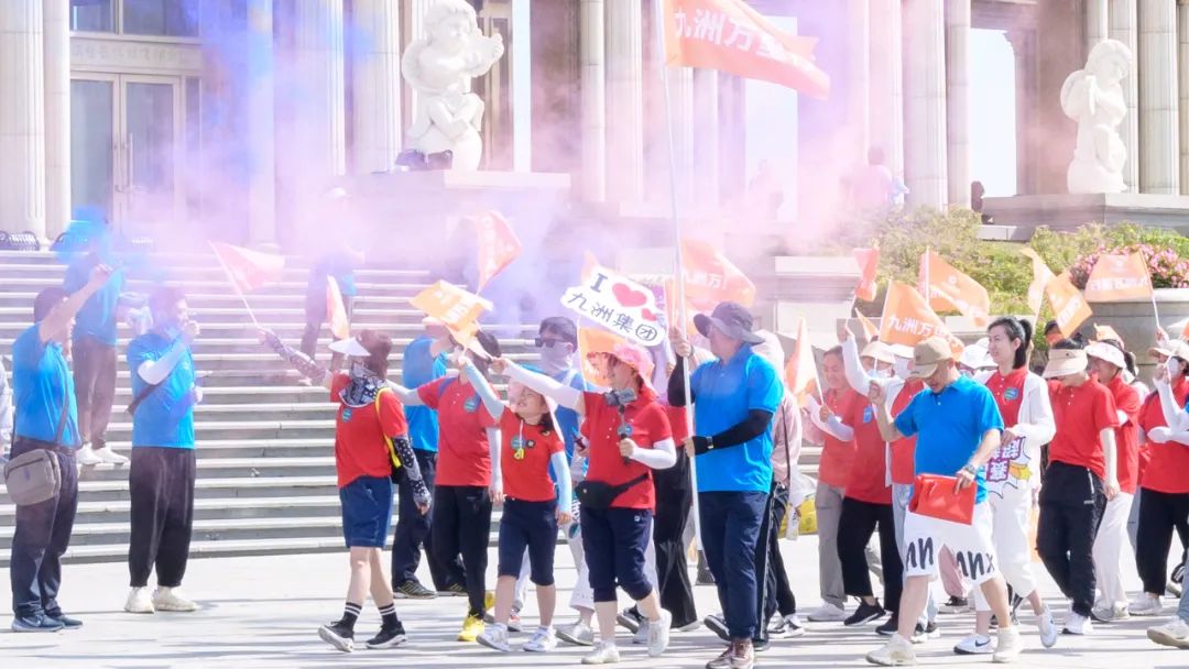 参与本次活动的九洲集团员工及家属400余名,身着统一的服装,排着整齐的方阵,手持明亮的九洲旗帜,意气风发,精神抖擞,齐聚于哈尔滨音乐公园广场,进行徒步前的列队仪式,蓄势待发。