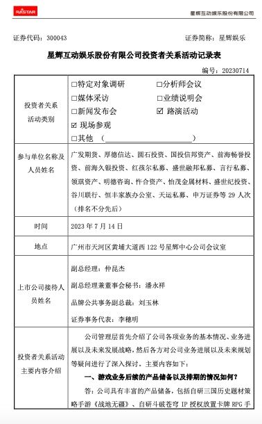 星辉互动娱乐股份有限公司(以下简称“星辉娱乐”或“公司”)7月14日晚间发布公告称,公司于多家机构投资者进行了路演活动。在活动中,星辉娱乐透露,今年上半年,公司对小程序游戏布局落地,像素风的《冒险归来》已上线,同时也有部分中尾部的游戏自研自发在海内外多个地区上线。下半年,公司自研的拳头产品《战地无疆》将由腾讯在中国大陆地区独家代理发行。该游戏已于2023年7月11日开启终极计费删档测试。目前测试结果符合公司的预期。