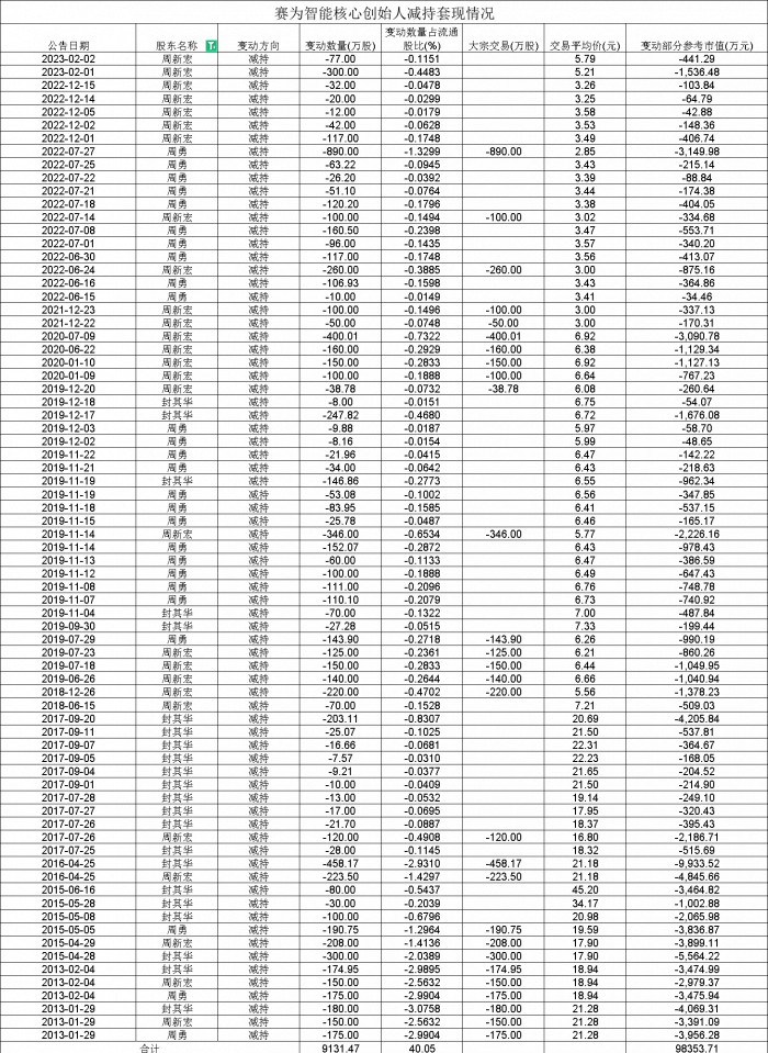 在被处罚的背后,赛为智能的核心创始团队通过套现已赚得盆满钵满。
