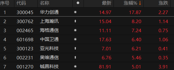 8月30日早盘,申万一级行业板块中,国防军工板块表现活跃。截至9时38分,华力创通涨超17%,此前一度20cm涨停,上海翰讯涨逾8%,海格通信涨超7%,亚光科技、中国卫通涨逾6%。