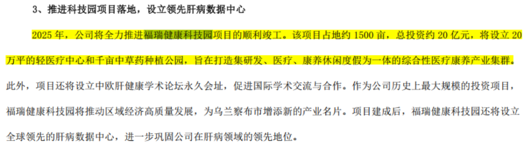 此外,公司在年报中还表示,2025年力争推进福瑞健康科技园竣工。你们看,公司宁愿下场开医院,用自己的药和仪器诊断治疗肝病,甚至投资20亿建科技园,也不愿研发新产品,这说明公司对自己的能力圈层认知也是比较到位的。
