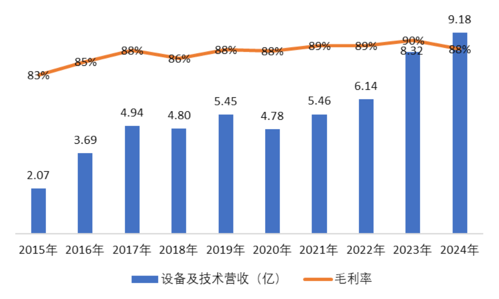 数据显示,2023年设备销售收入5.03亿,2024年设备销售收入5.11亿,跟之前整个板块收入都在5亿上下并无不同。