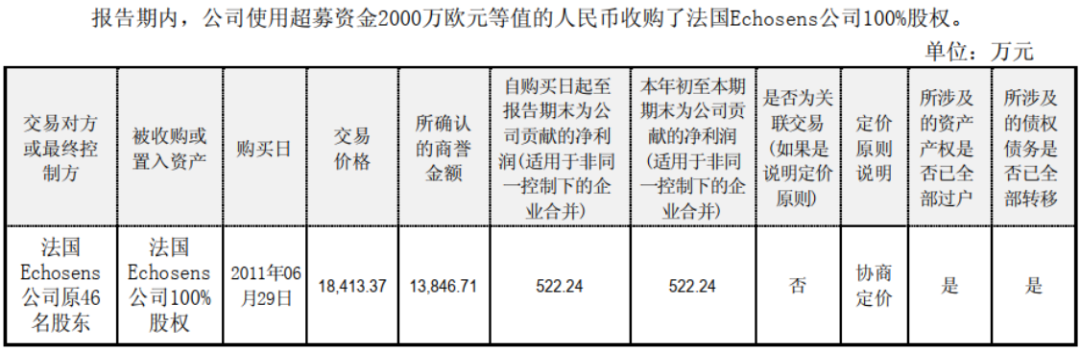 2011年,福瑞股份耗资1.84亿拿下法国Echosens公司100%股权,获得Fibroscan的核心技术,1.38亿商誉也自此成为公司账面商誉的主要组成部分。