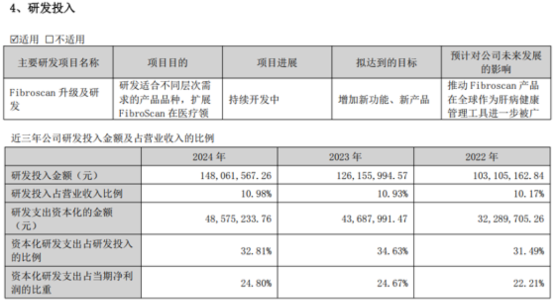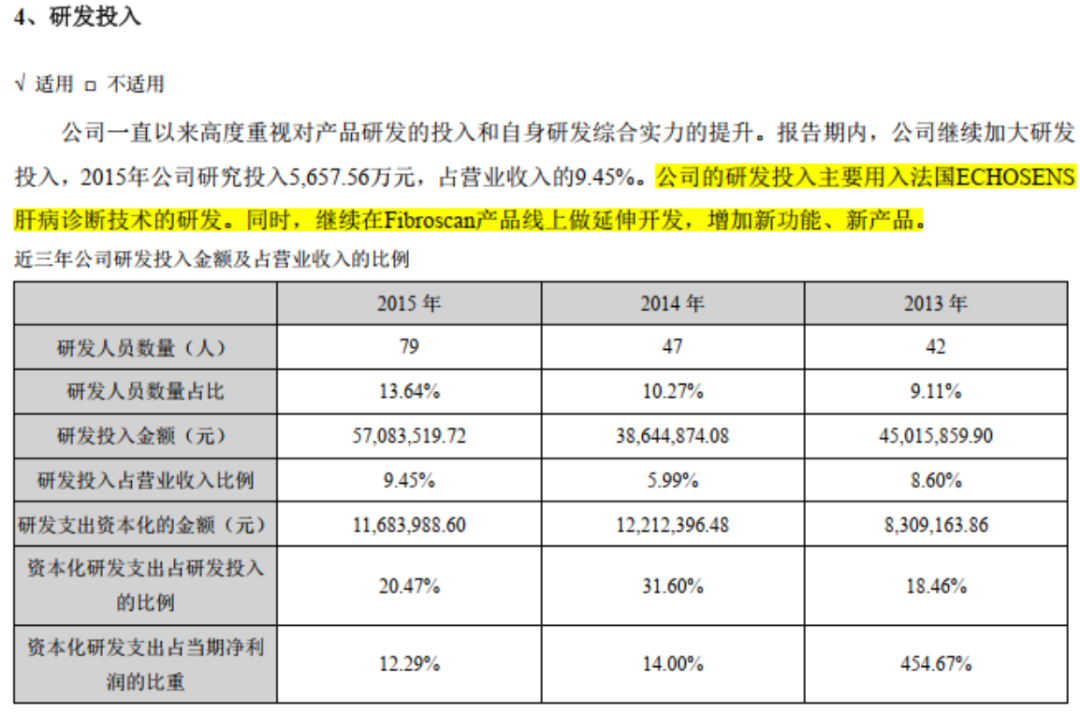 基于先天缺陷,这么多年来,福瑞股份的研发投入主要用于FibroScan系列产品,既不研发新药,也不研发新医疗器械。研发投入占收入比重基本就在10%左右,只考虑费用化部分,只有7%左右。