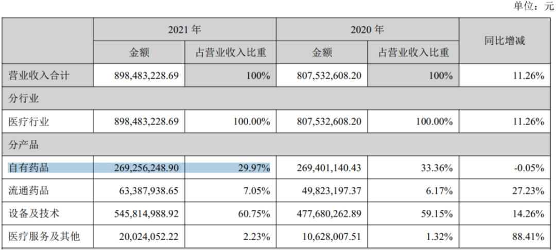 另一方面,福瑞医药2021年年报的药品业务营收3.33亿,其中自有药品销售收入2.69亿,数据也基本吻合。