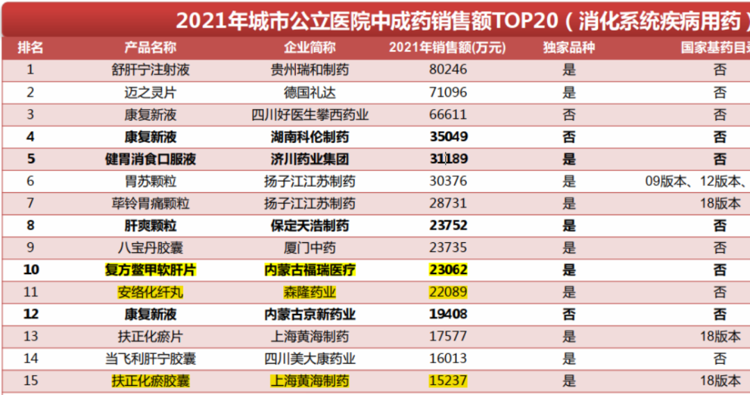 参考西南证券2024年的研报数据,复方鳖甲软肝片、安络化纤丸、扶正化瘀胶囊2021年在公立医院的销售额都在2亿上下,历时十年之后,复方鳖甲软肝片虽仍排在第一,但领先优势并不明显。