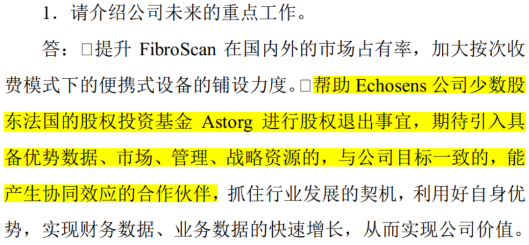 目前,福瑞股份持有Echosens公司50.09%股权,仍处于绝对控股地位。此外,Echosens二股东Astorg自2024年开始寻求退出,现阶段尚未有实质进展。