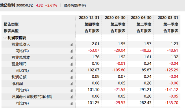 差错更正后,世纪鼎利2020年一季度、半年度和前三季度营业收入分别为1.23亿元、1.57亿元和1.95亿元,同比下降48.61%、48.22%和29.04%。
