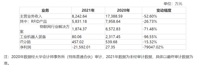 一芯智能2021年主营业务收入为8242.64万元,同比下降52.60%;净利润亏损2.16亿元,同比下降79047.02%。世纪鼎利表示,物联网业务与预期差异的主要原因:一是一芯智能的管理团队及技术骨干出现较大面积的流失;二是国内外仍然受新冠疫情影响,物联网的商务拓展主要通过到客户现场进行现场交流、需求调研等方式进行推进,全国各地散发的疫情对公司业务拓展造成了一定的限制。