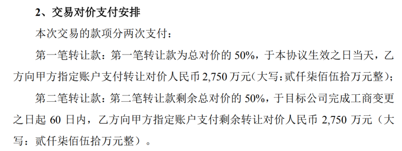 而根据当时的转让协议,第二笔转让款2750万元(交易总对价的剩余50%),需在上海一芯完成工商变更之日起60日内,由上海复维向世纪鼎利指定账户中支付。