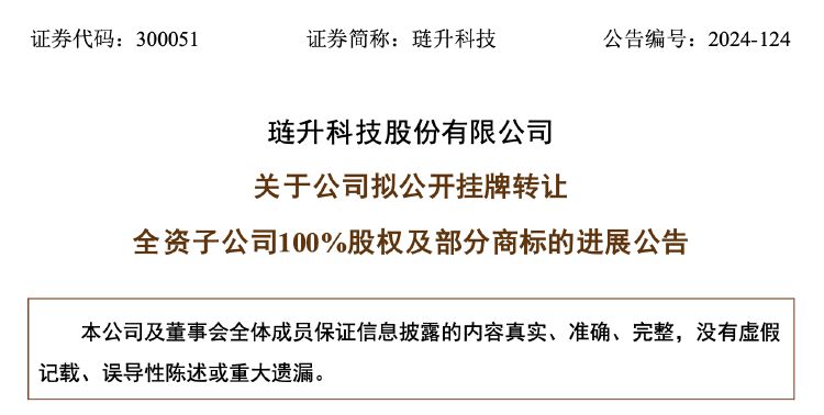 11月21日晚间,琏升科技(300051)发布关于公司拟公开挂牌转让全资子公司100%股权及部分商标的进展公告。