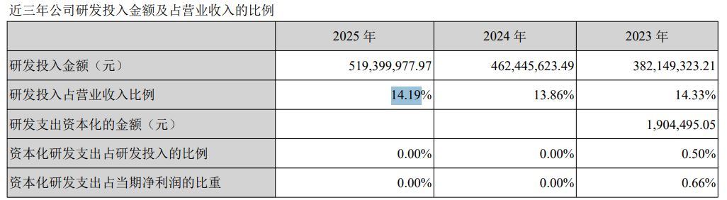 首先是持续的高强度研发投入。作为一家平台型材料企业,鼎龙股份必须在多个前沿赛道同时保持技术攻坚。2025年,公司研发投入高达5.19亿元,占营业收入的比例为14.19%。这种高强度的资金消耗,是维持其核心竞争力的必要代价,但在短期内无疑会对整体利润空间形成挤压。公司在年报中也坦言,高端晶圆光刻胶、半导体先进封装材料等业务尚处于市场开拓及放量初期,尚未实现盈利,且需要持续投入,这在一定程度上影响了本期的归母净利润水平。