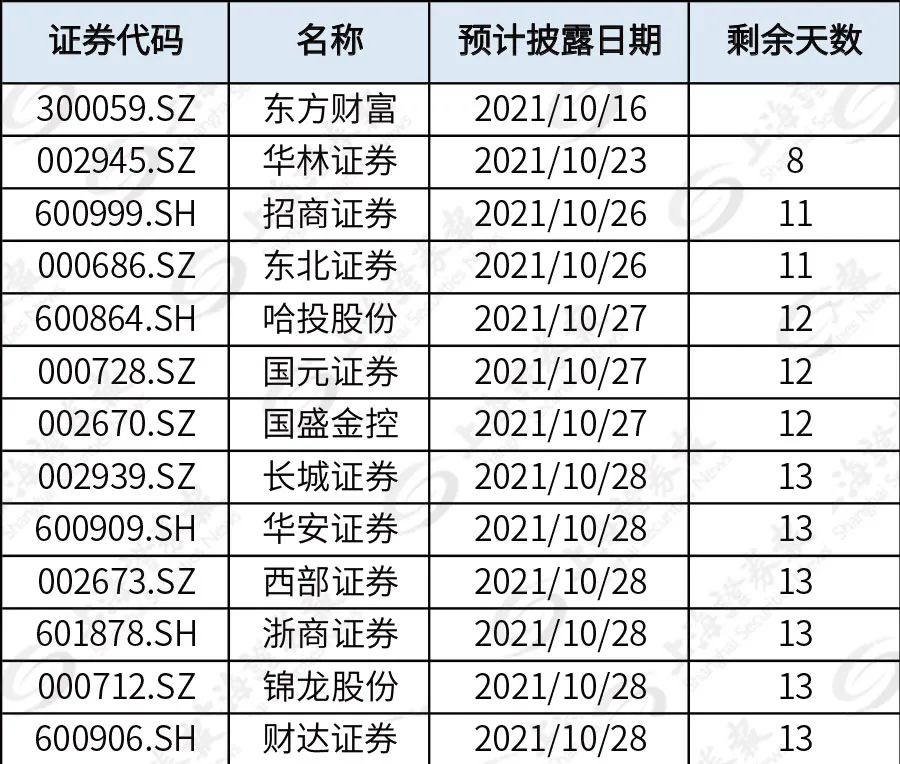 根据Wind统计,华林证券、招商证券、东北证券等多家券商将紧随其后披露三季报业绩。