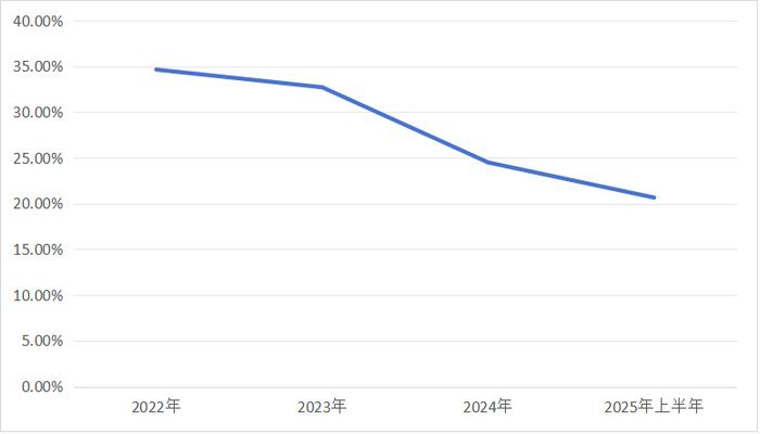 2022年—2024年,该公司金融电子商务服务营业总收入占该公司营业总收入的比例分别为34.64%、32.71%、24.49%。