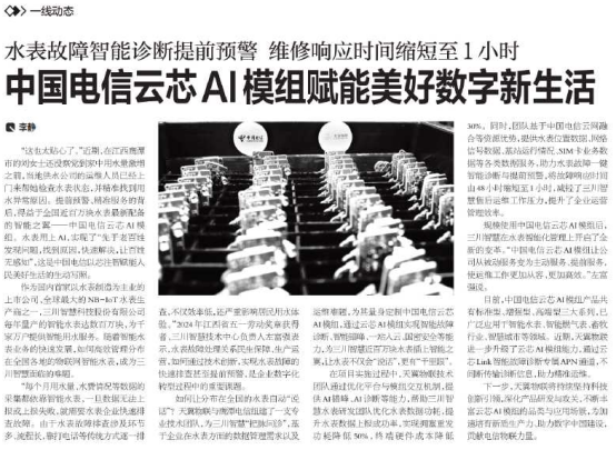 这些举措不仅使得水表故障售后响应时间大幅缩短(从48小时缩减至1小时),而且有效减轻了售后运维的工作压力,进一步提升了企业运营管理效率。这项AI技术为智能水表行业的发展注入了新的活力,也为行业带来更先进、更智能的水表运维解决方案。相信在未来规模使用中国电信云芯AI模组后,三川智慧的水表智能化管理可以为整个水表行业开启全新的变革篇章。