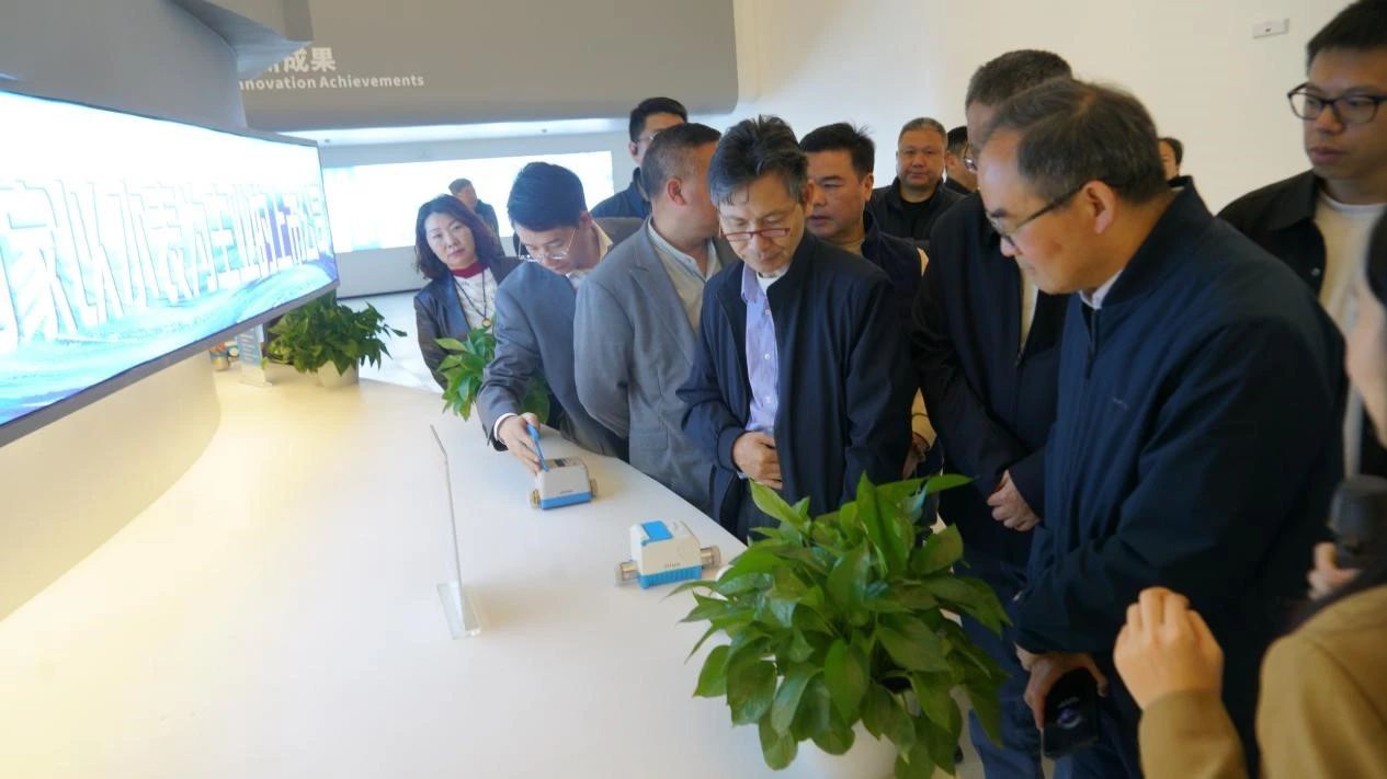 考察团首站来到三川智慧全新落成的数字化展厅,重点展示了公司自主研发的多系列智能水表产品及行业应用案例。作为国内最早布局物联网水表的企业之一,三川智慧自2016年与华为合作研发首款NB-IoT物联网水表以来,始终引领行业技术革新。截至目前,公司NB-IoT系列产品已在全国超1500万台在线运行,覆盖北京、上海、深圳等一线城市及全国上百座城市。