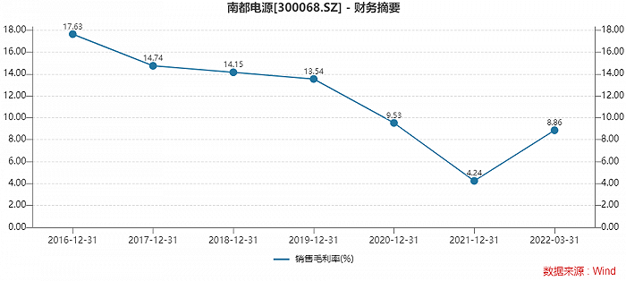 今年一季度,南都电源销售毛利率上升至8.86%,较去年上升4.62个百分点。第二季度公司毛利率或继续上行。