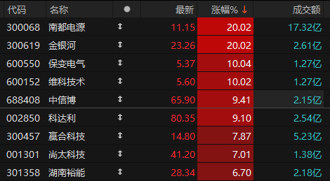9月3日午后,电力设备板块持续走强。截至13时32分,南都电源、金银河、保变电气、维科技术涨停。中信博、科达利涨超9%,赢合科技、尚太科技涨逾7%。