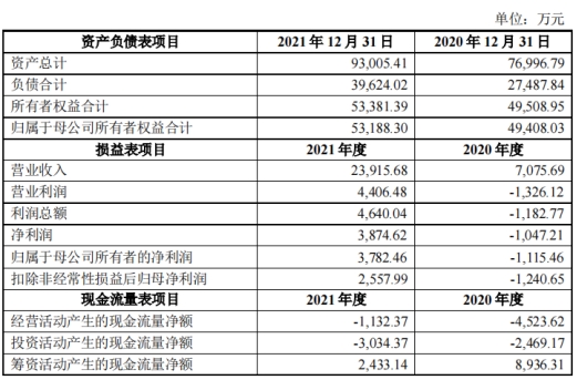 标的公司成都润博主营业务以生产、销售导弹结构件、靶弹等军品为主,以雷达天线、工业CT检测等其他产品和技术服务为辅。标的公司2020年、2021年主要财务数据如下: