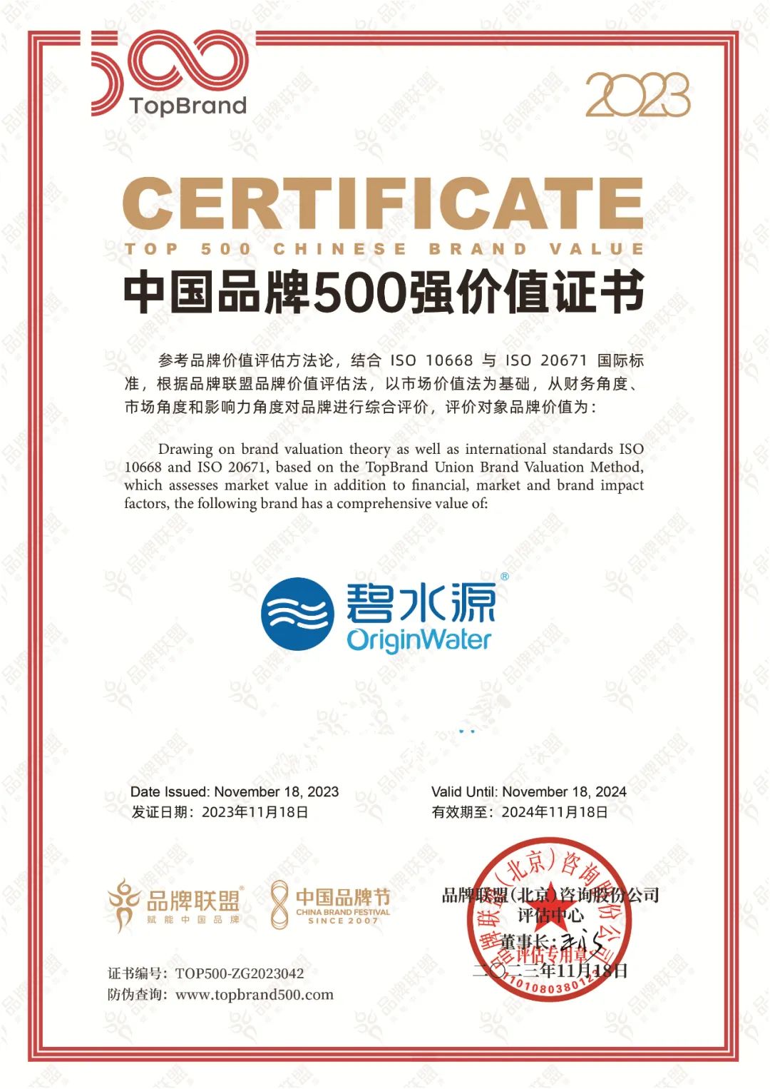 11月17日至20日,以“复苏与腾飞”为主题的2023第十七届中国品牌节在杭州举行。大会发布了《TopBrand 2023 中国品牌500强》榜单,碧水源荣获2023中国品牌500强荣誉称号。
