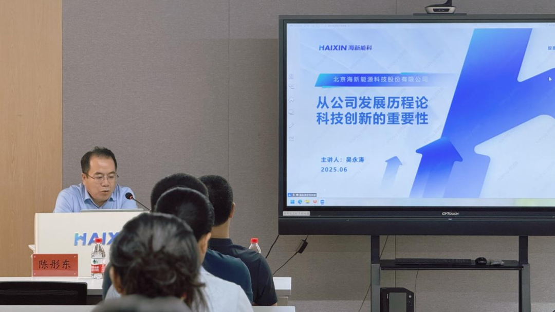 培训伊始,吴永涛以创新是第一动力为切入点,强调科技创新在当今时代对企业生存发展的决定性意义。他指出,回望海新能科近三十年发展征程,从技术引进到自主创新,从行业跟跑到领跑跨越,公司始终以科技创新为安身立命之本,以管理创新为发展壮大之基,拼搏下了深厚的产业基础与发展智慧。