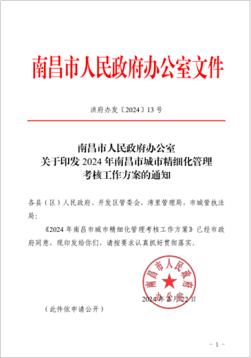 二是打造切实可行的考核评价办法:南昌市的“一办”指市政府下发的《城市管理精细化考核办法》,针对各区县、街道(乡镇、管理处)等考核对象,按季度出台评价报告,量化城市管理得分,考核城市管理工作质量,并将结果纳入市级绩效考核指标体系,促使各部门高度重视,积极落实考核事项。