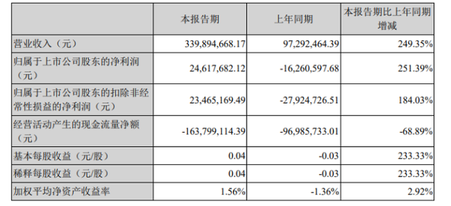 报告显示,国民技术营业收入较上年同期增长249.35%,是公司通用MCU和负极材料销售收入增加。